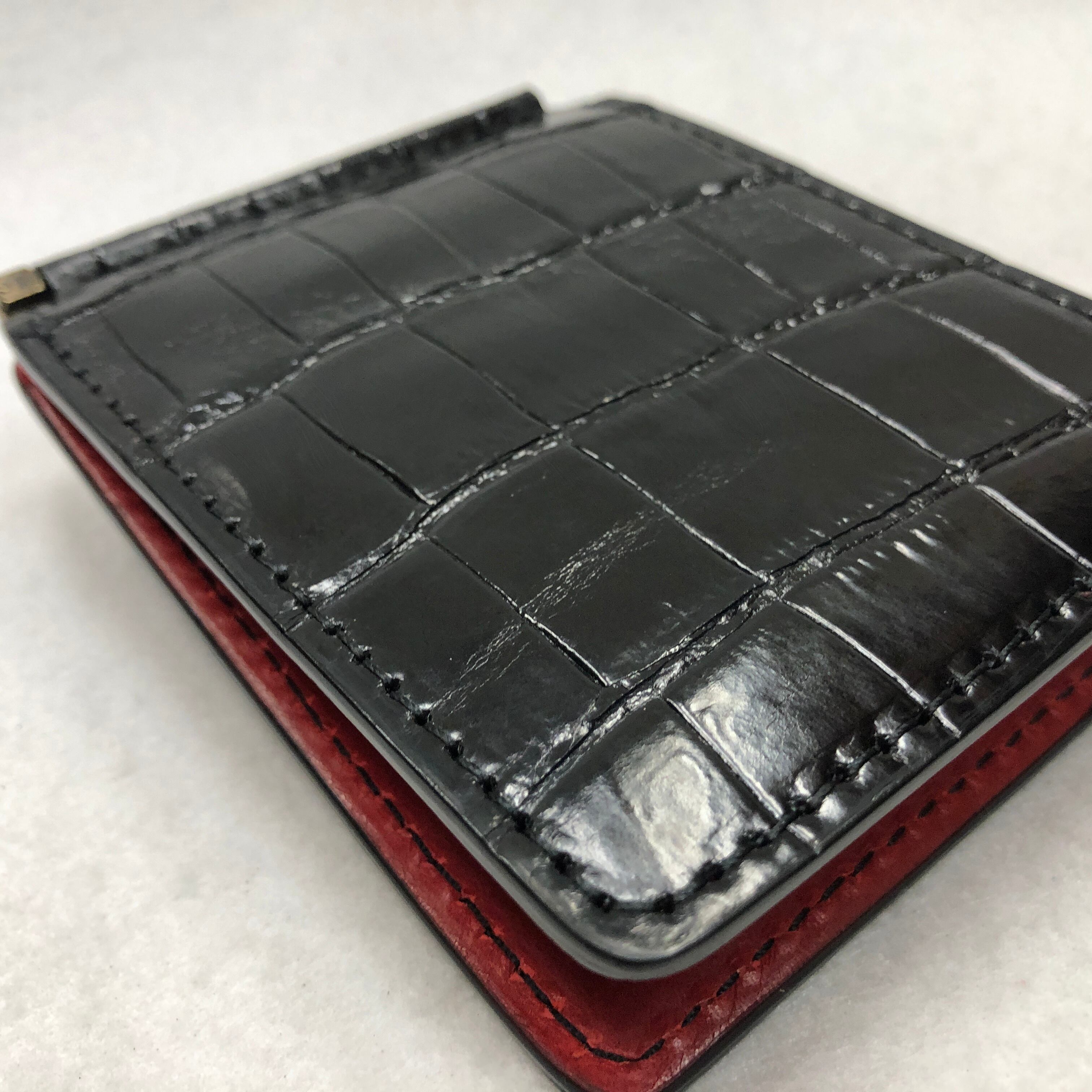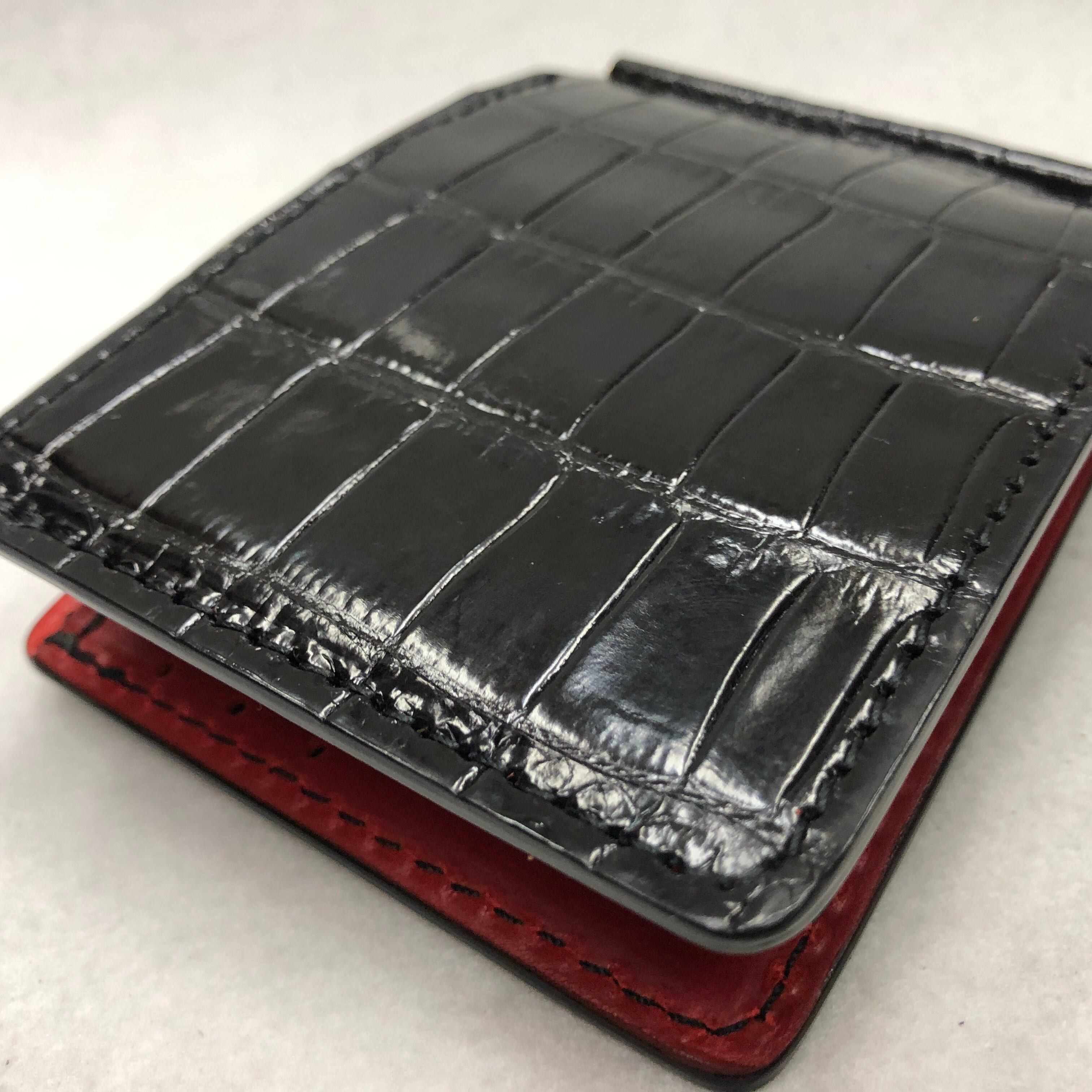 RED TAGスモールクロコダイルマネークリップ テール部半艶ブラック/レッドベース