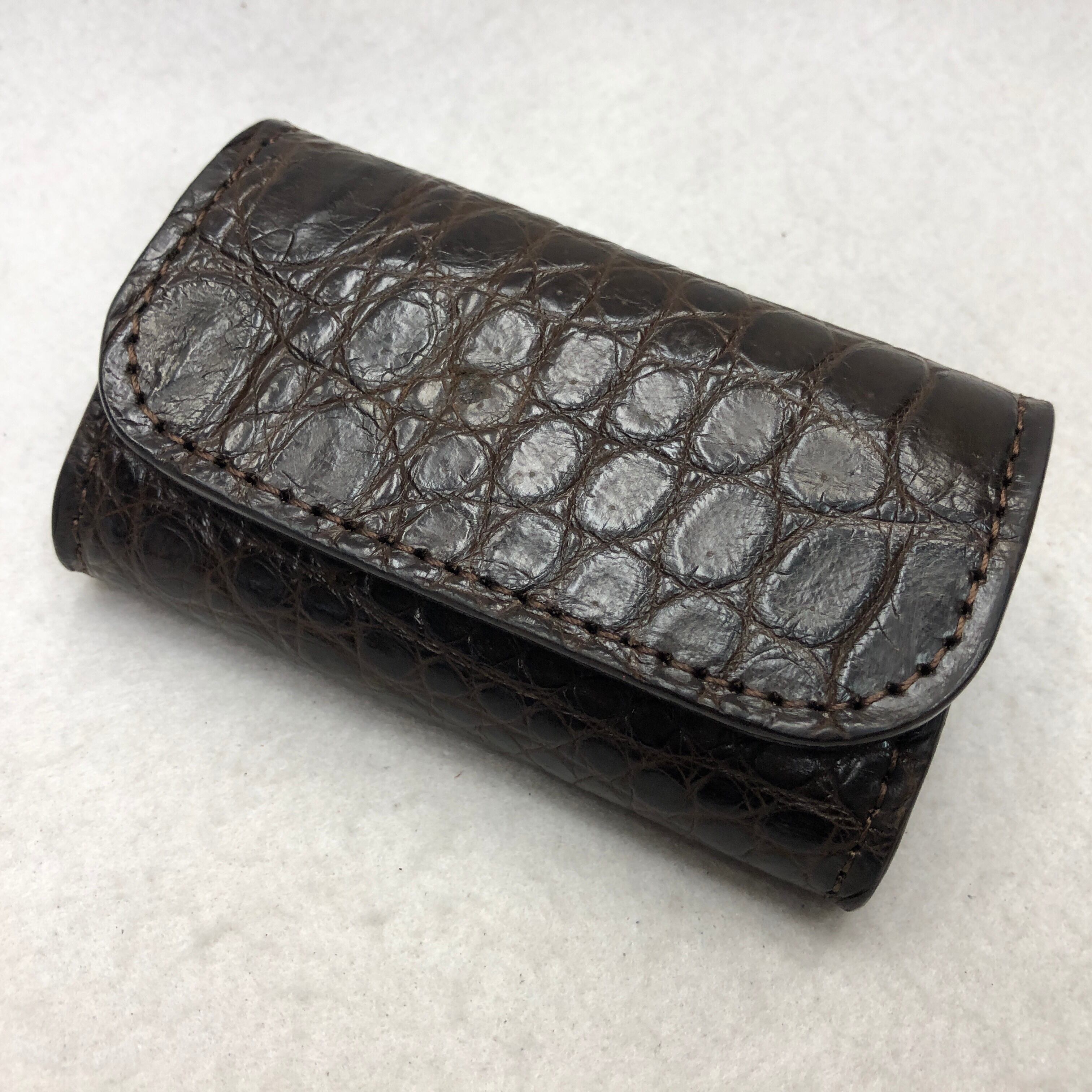 252 シャムクロコダイルレザー キーケース 肚サイド ダークブラウン