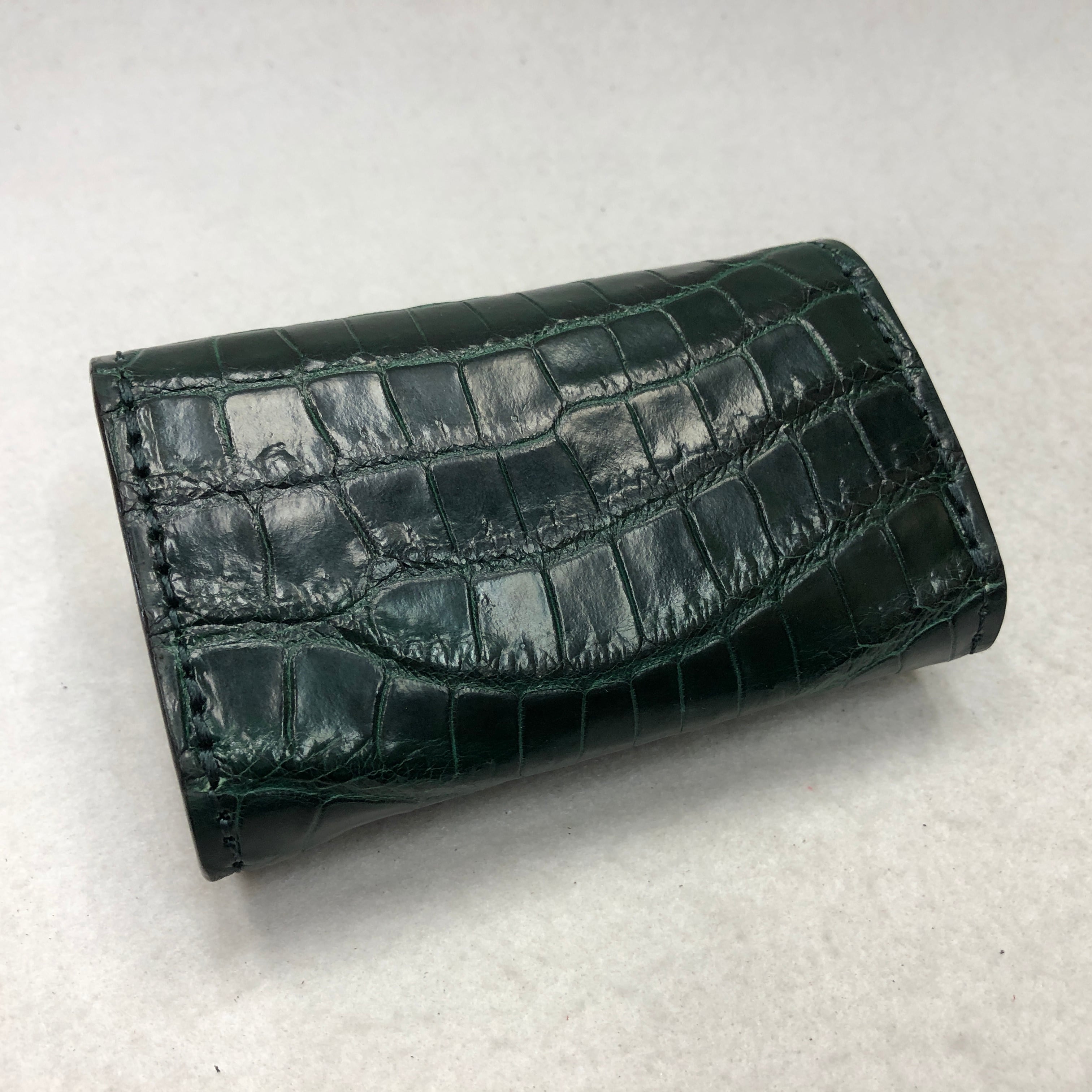 151 キーケース スモールクロコダイル 顎下 ブラウンベース ディープグリーン