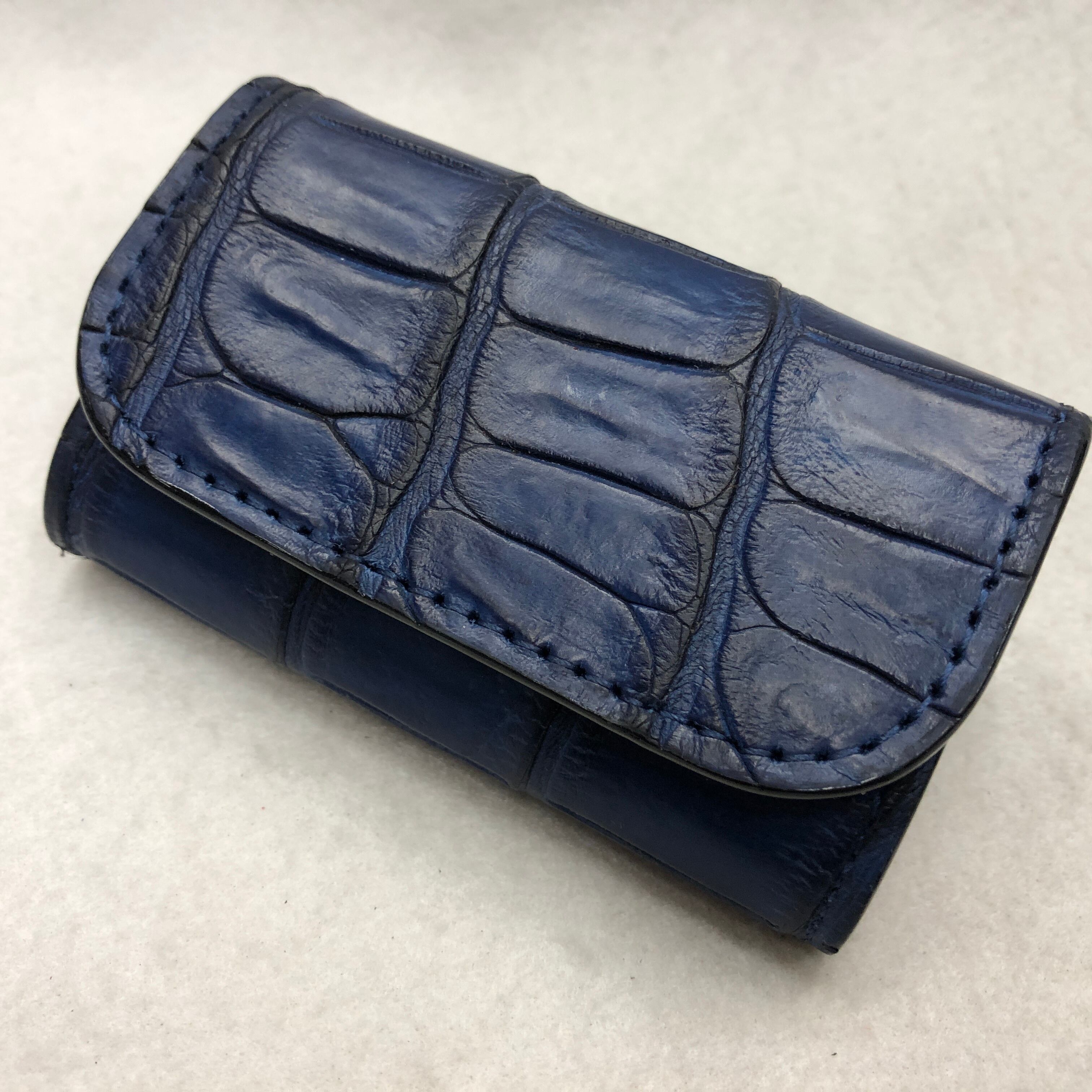 102-1 藍染スモールクロコダイルキーケース レッドベース テール