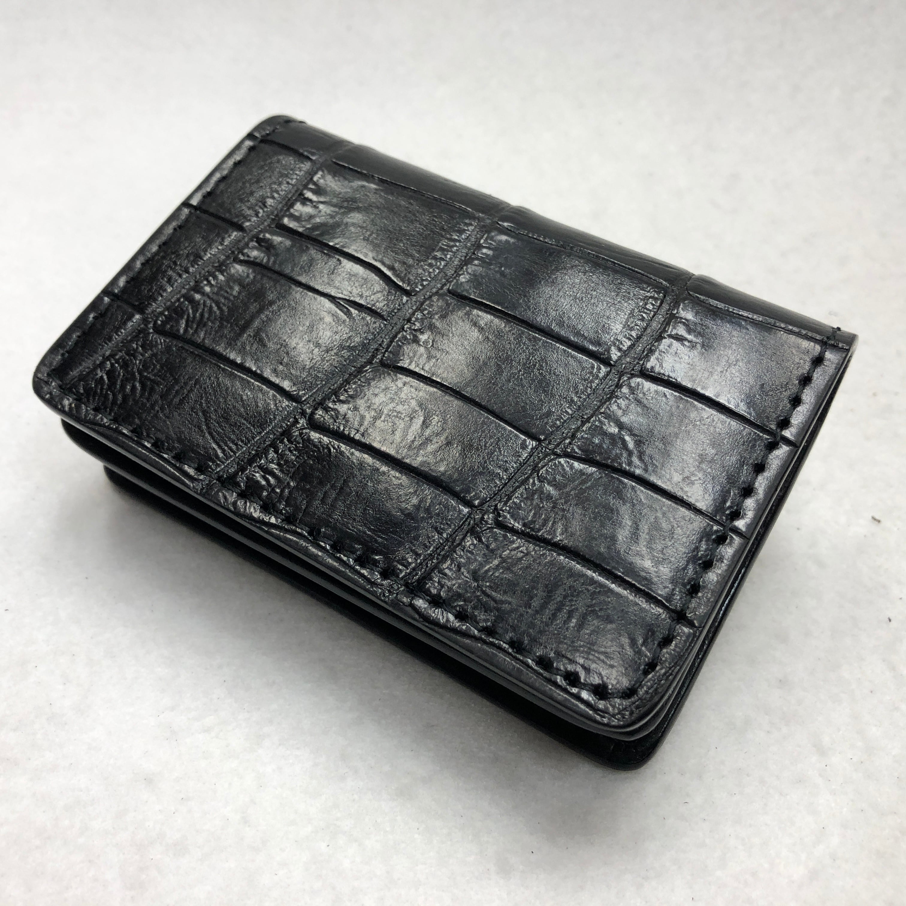 238 カードケース スモールクロコダイル テール部 ブラックベース
