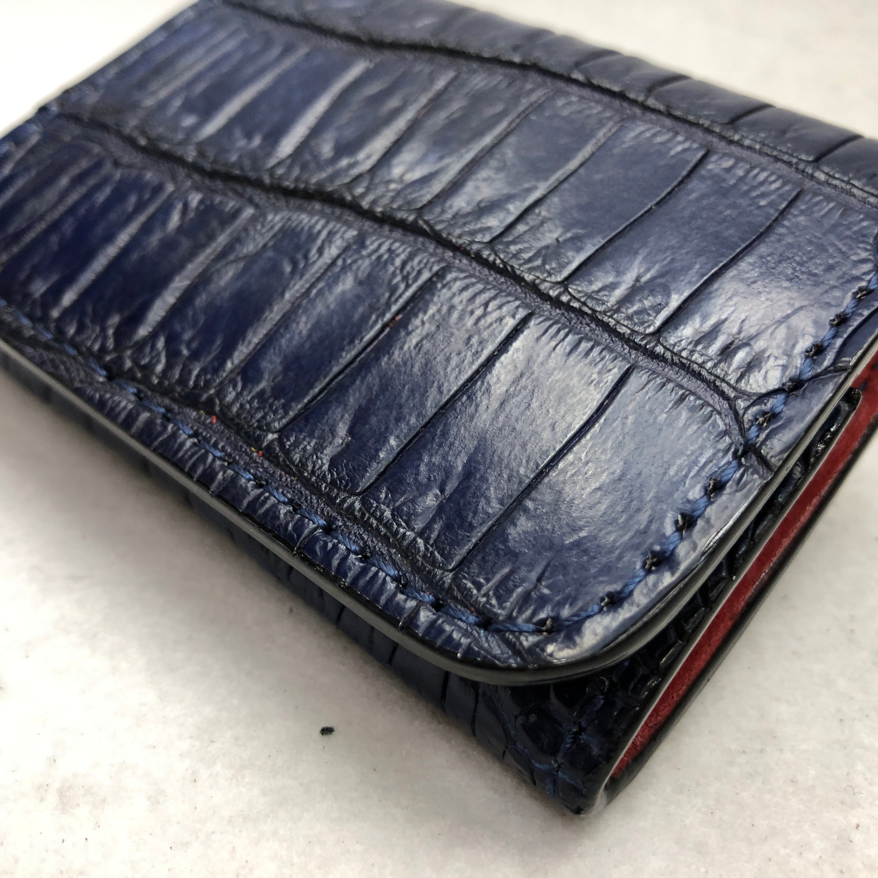 100-1 RED TAG藍染スモールクロコダイル コインケース レッドベース テール部