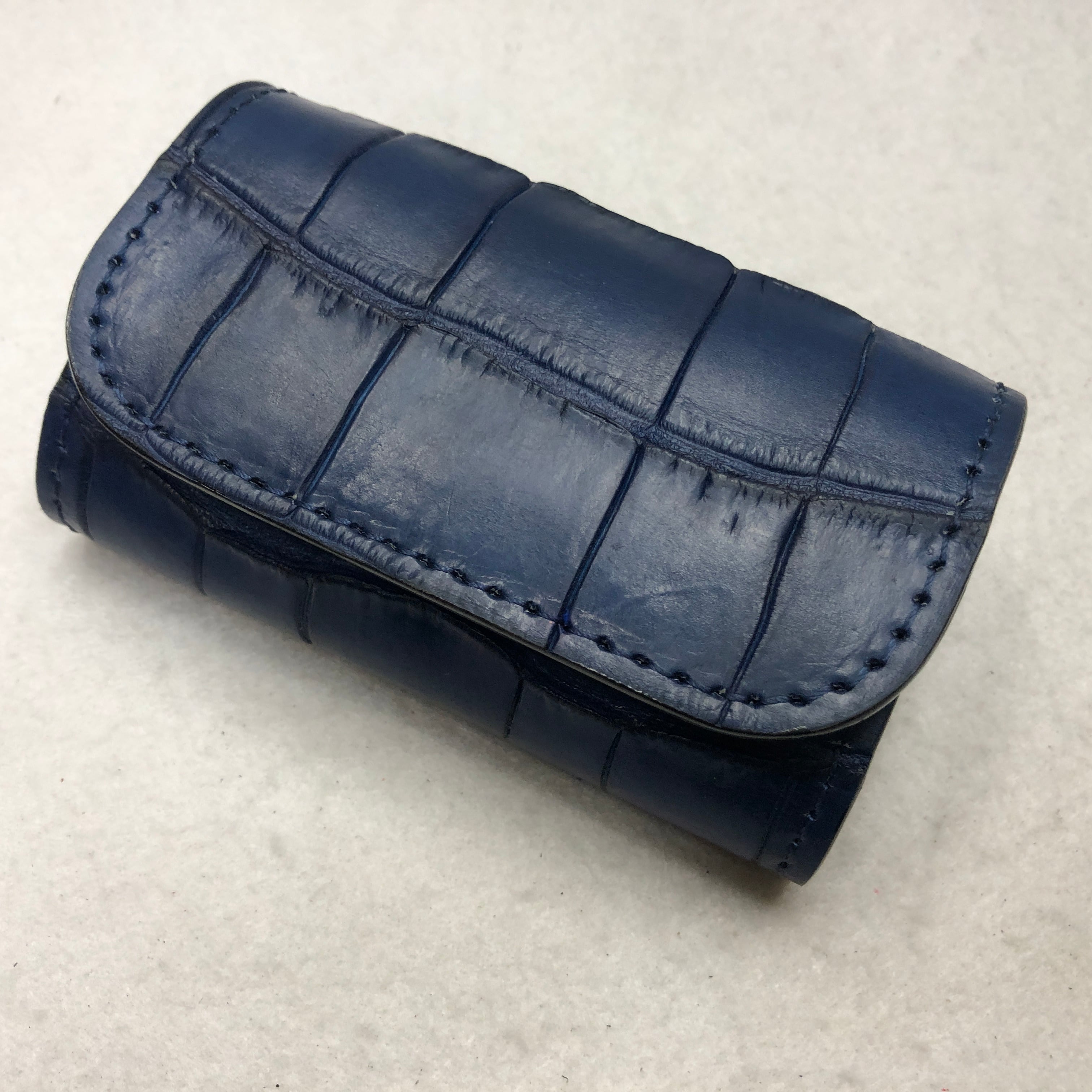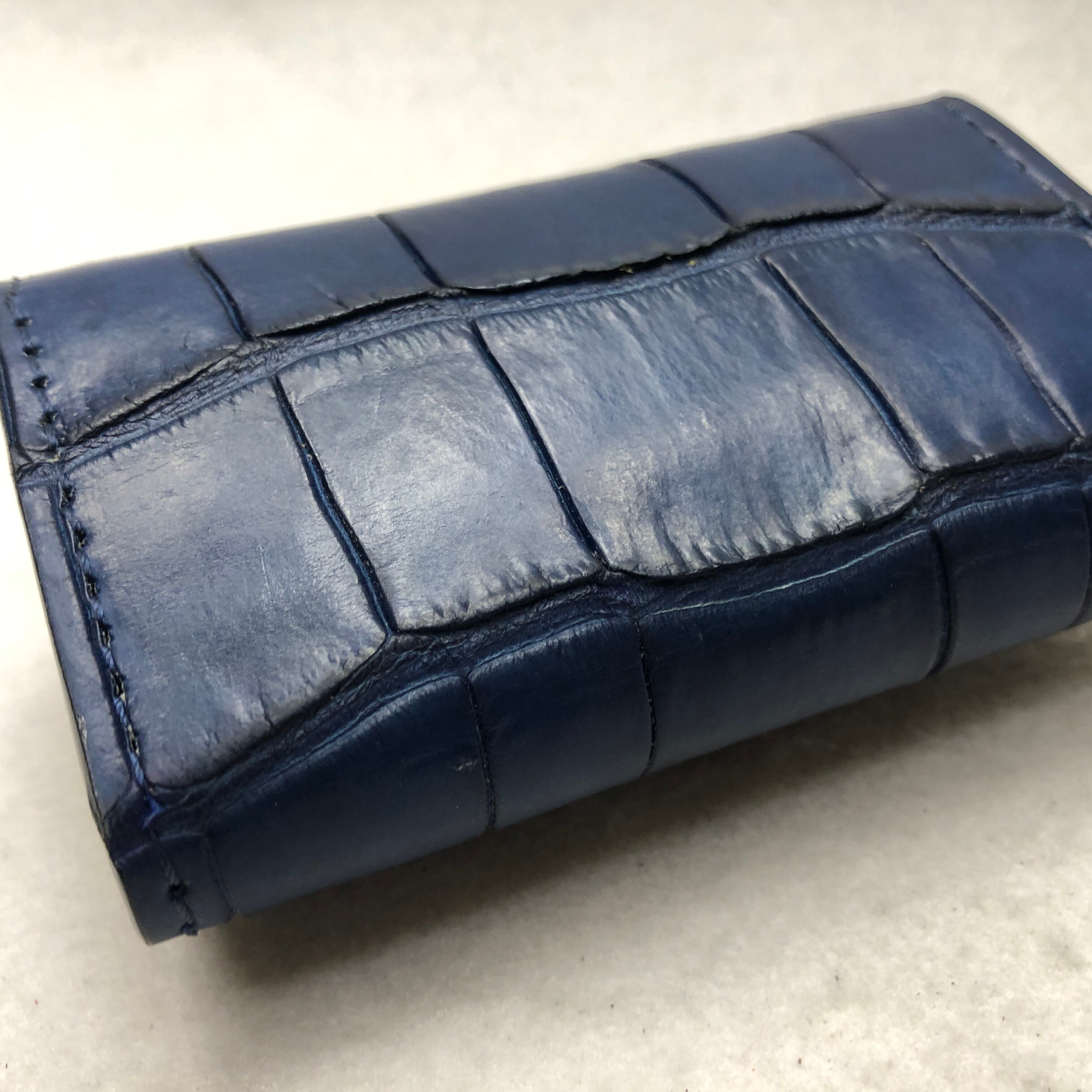 藍染めスモールクロコダイル キーケース