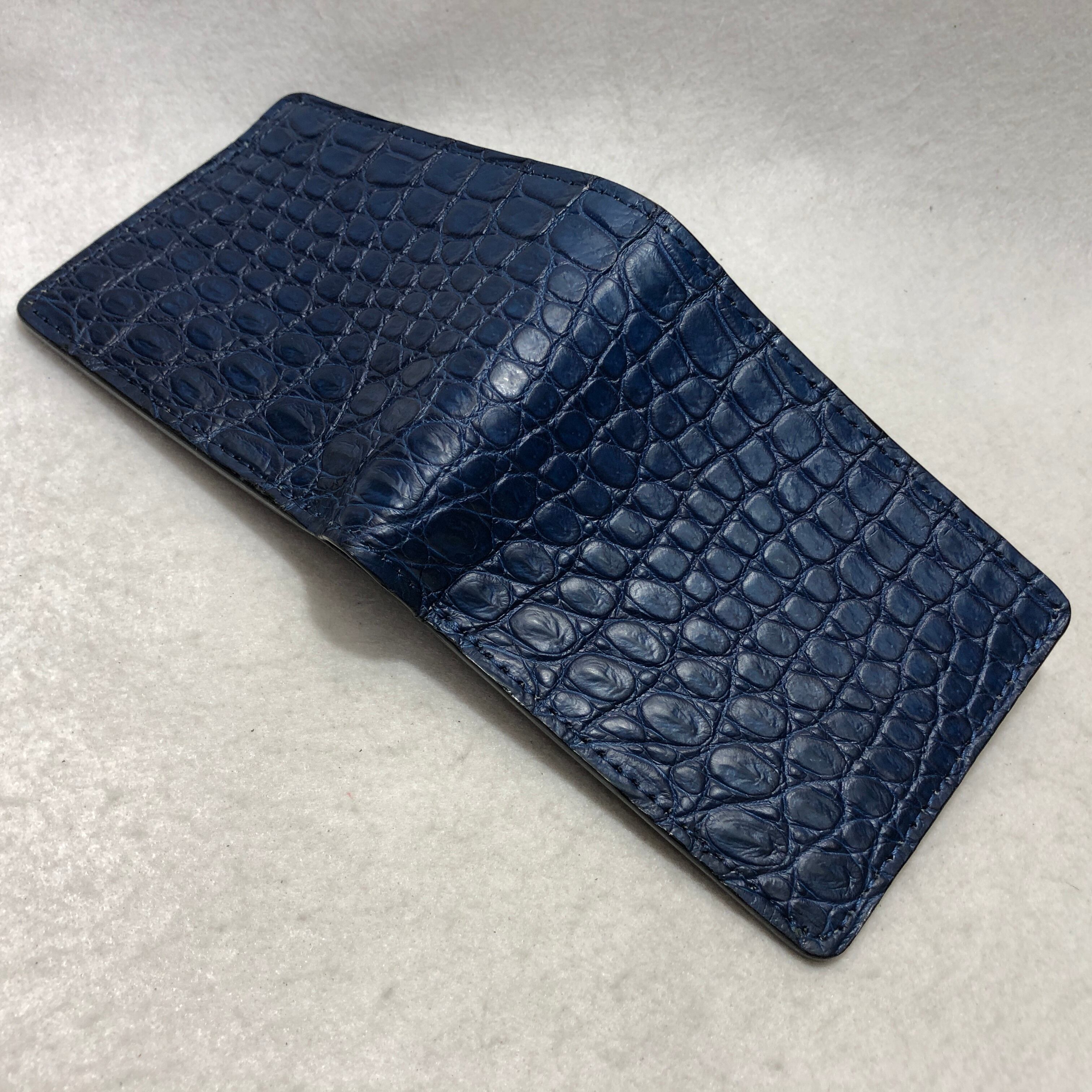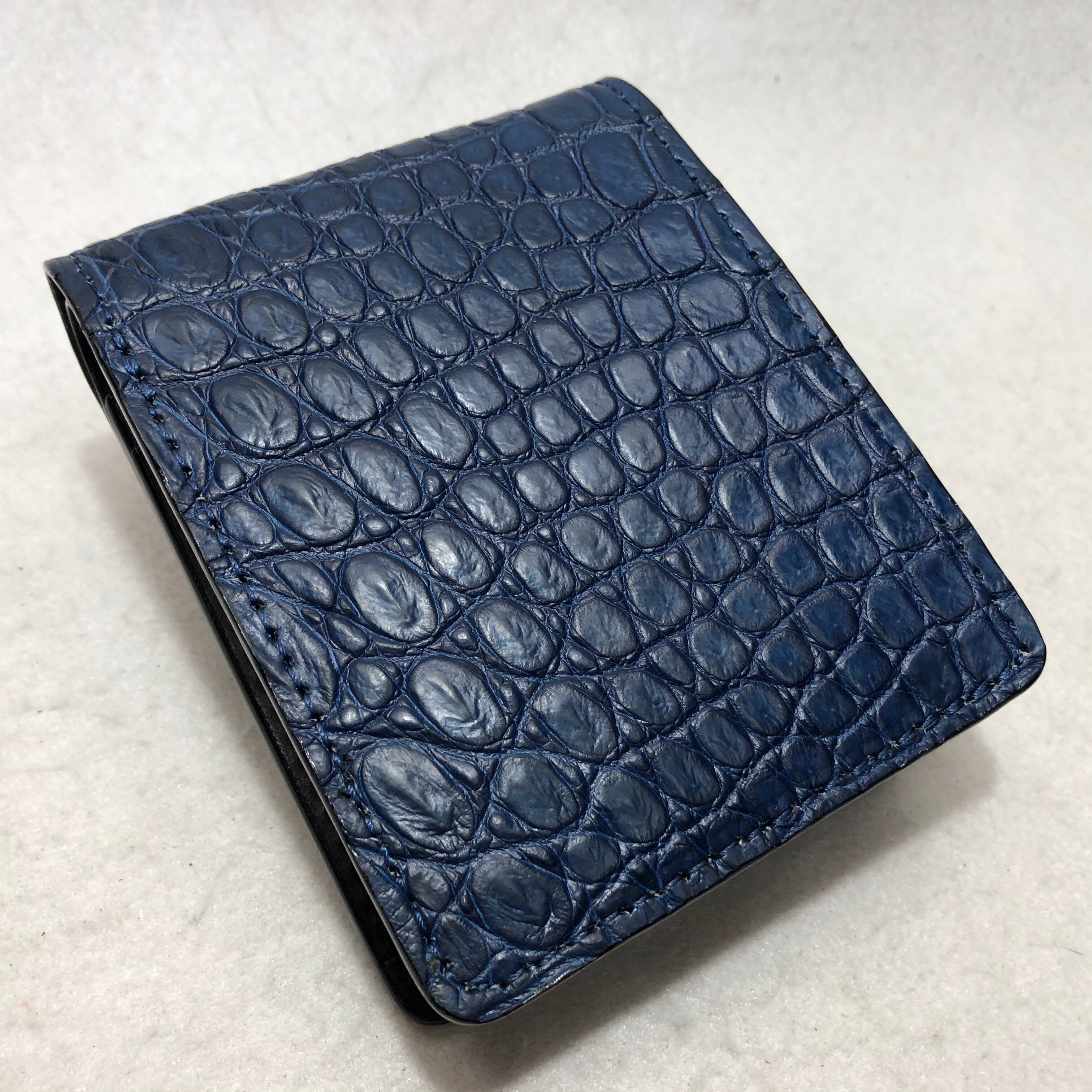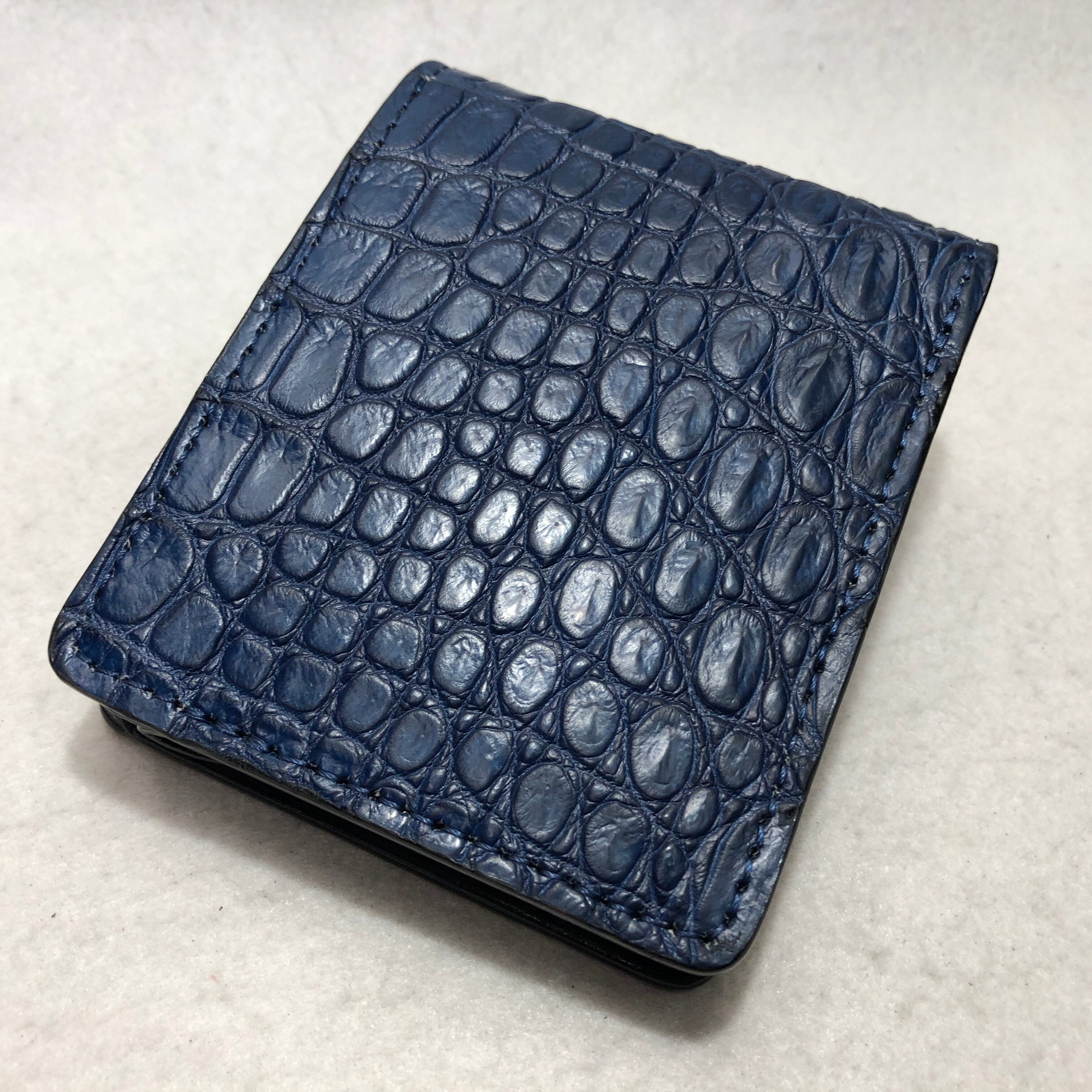 81 藍染スモールクロコダイル折財布1 肚サイド