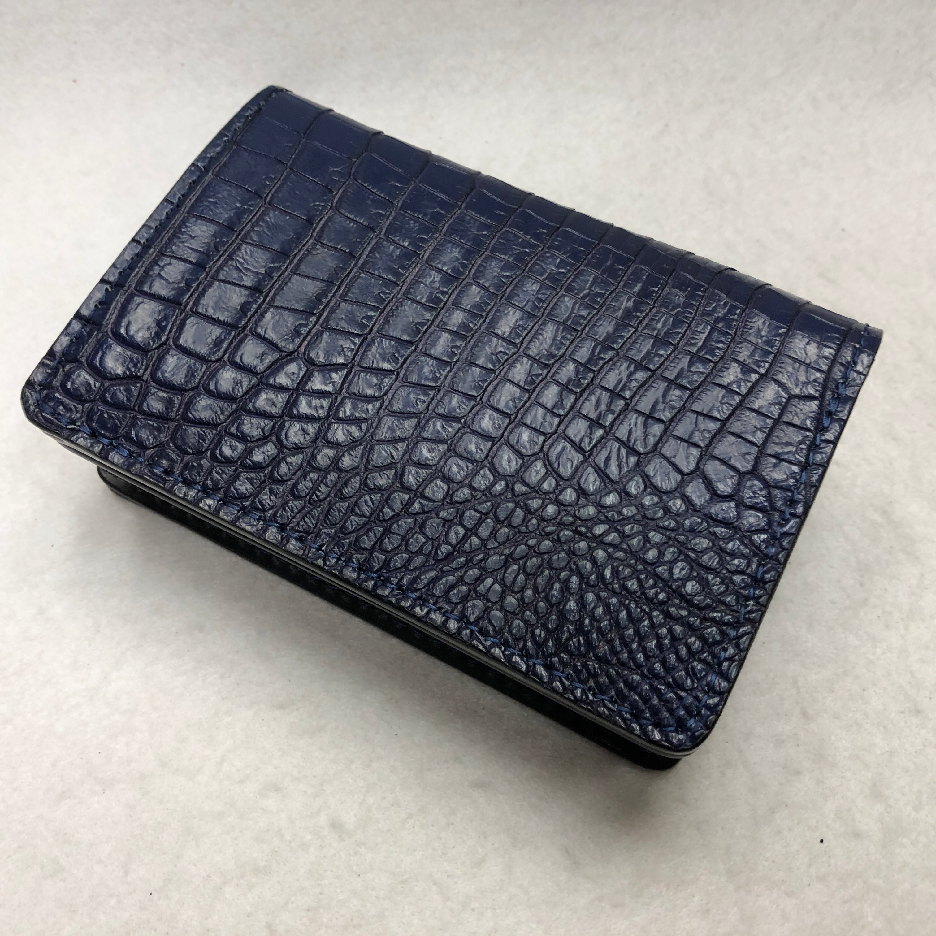 79 藍染めスモールクロコダイル 折財布1 肚クロコ