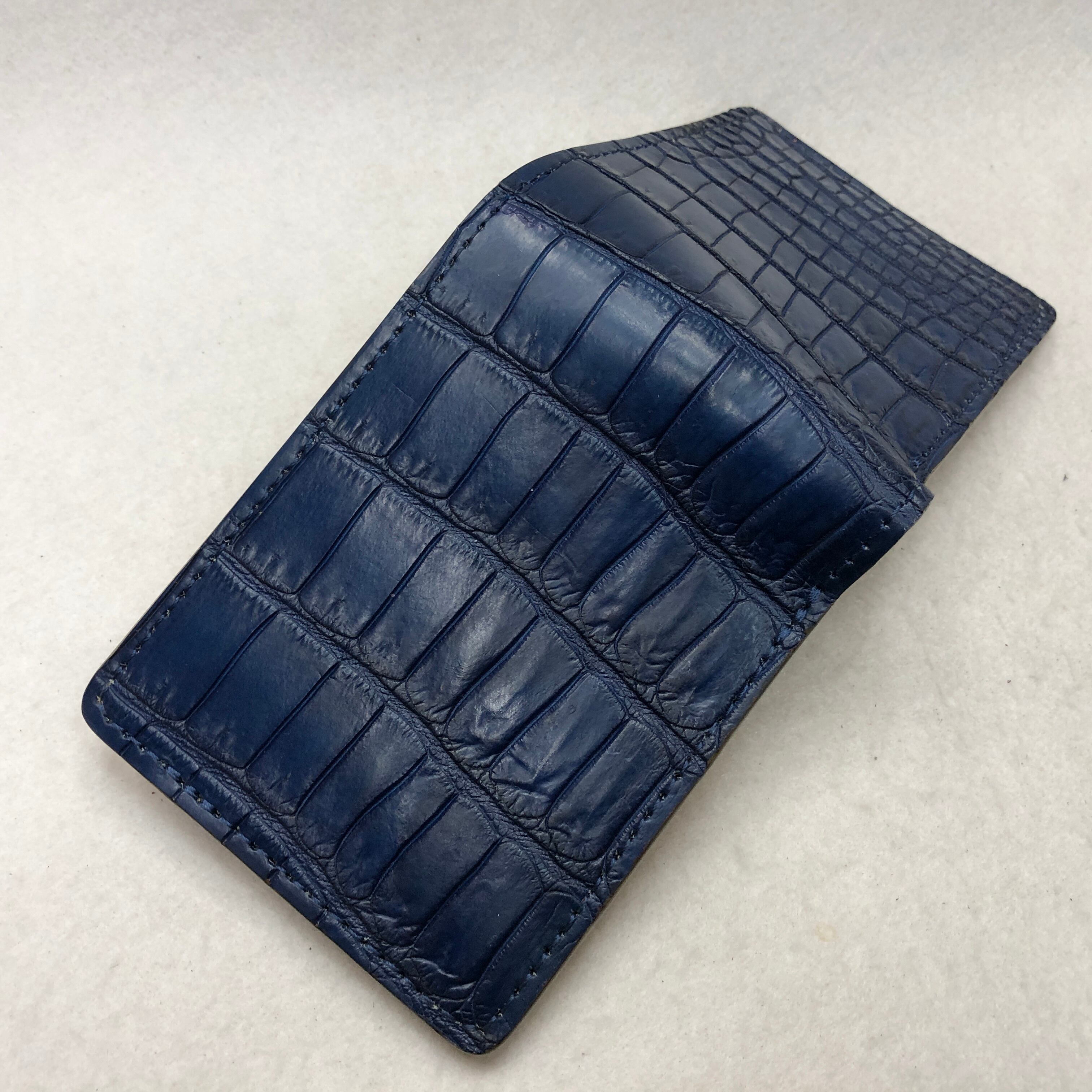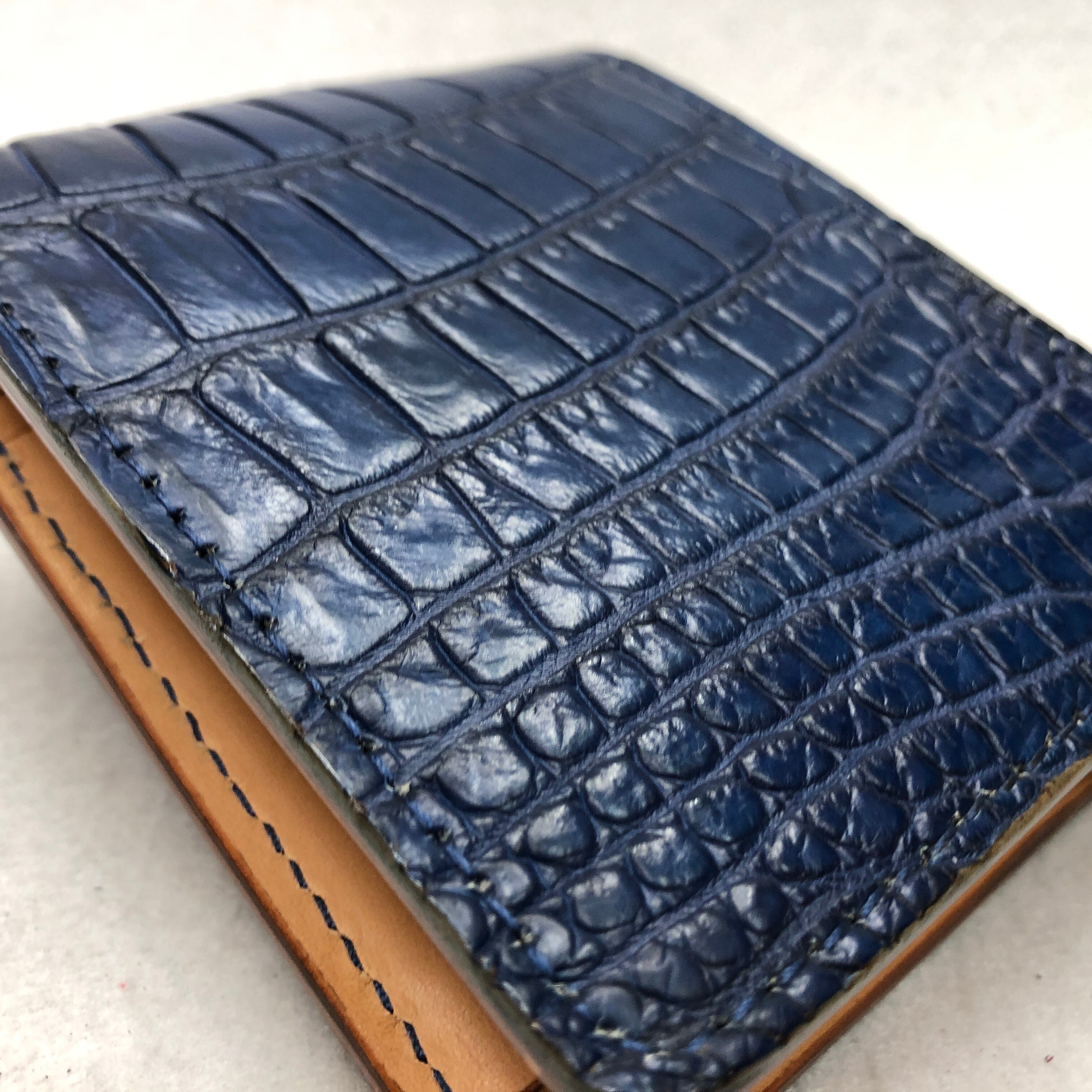 95RED TAG 藍染スモールクロコダイル折り財布/テール部1 タン/生成りベース
