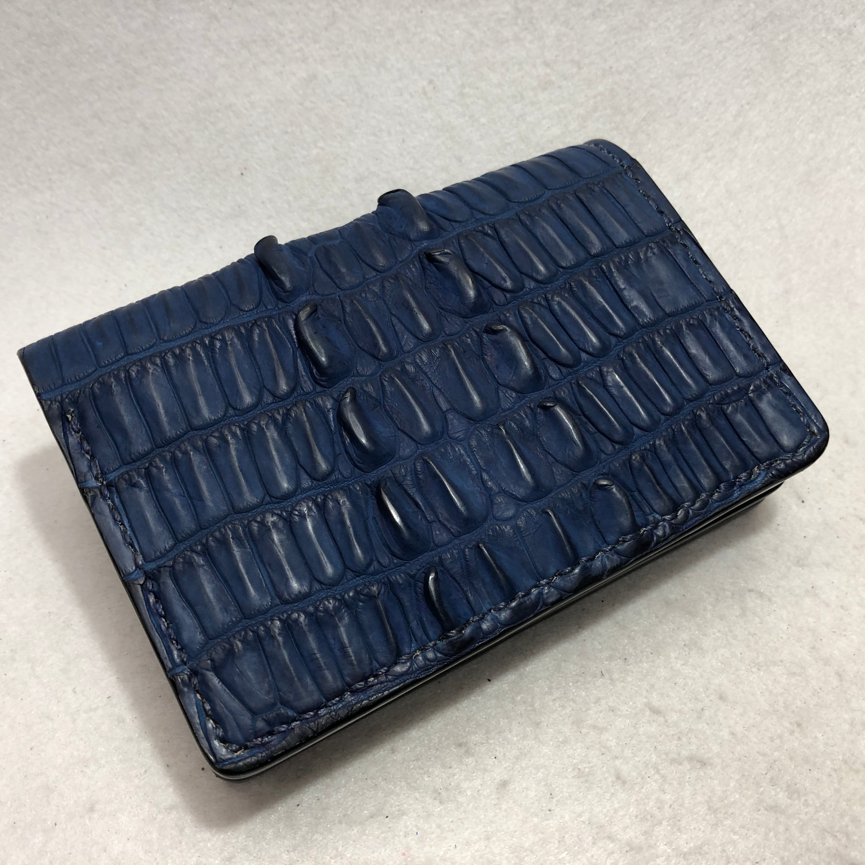 HB02 藍染めホーンバック・スモールクロコダイル 2つ折財布サドルマット仕上げ・外周手縫い